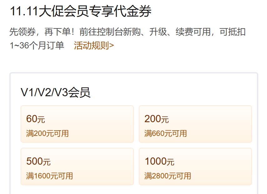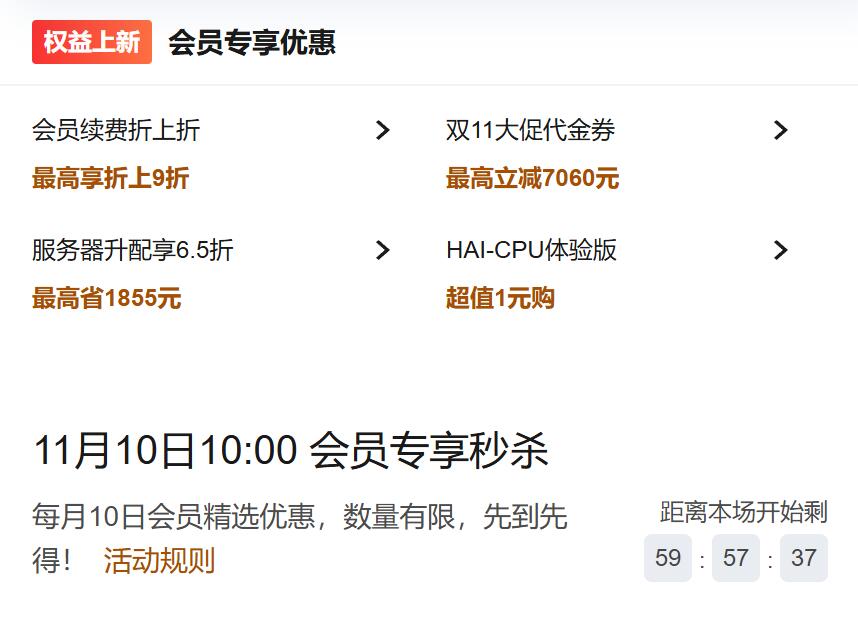 🎉【腾讯云双11会员狂欢节】尊享独家权益,云助企业腾飞!代理商专属招募中!🎉✅ 腾讯云会员中心重磅福利:会员专享超高折扣+独家权益,云服务器、数据库等核心产品低至3.5折起!✅ AI算力+会员特权双buff:购买会员即赠GPU算力优惠券,大模型训练成本再降50%!✅ 代理商专享加码计划:通过您的推荐链接注册会员并消费,享阶梯式高额返佣+会员专属激励(政策私聊获取)!✅ 60+爆款产品免费试用:AI、大数据、存储等前沿技术0元体验,助力客户快速决策!🔹 专属价格特权:会员购买云服务器、数据库、CDN等全品类产品,常年享受比普通用户低10%-30%的折扣!🔹 免费额度加码:会员每月赠送额外流量包、存储空间、API调用次数,降低企业运营成本!🔹 优先技术支持:会员专属客服通道,24小时极速响应,保障业务无忧!🔹 新功能抢先体验:会员优先试用腾讯云最新AI工具、数据库功能,抢占技术红利!1️⃣ 长期成本最优解:会员折扣叠加双11大促,全年最低价锁定,性价比之王!2️⃣ AI与云服务无缝结合:会员购买GPU/大模型服务,额外赠送算力券,加速业务创新!3️⃣ 企业级保障:会员享更高SLA服务保障,99.9%可用性承诺,业务更稳定!1️⃣ 立即推送会员专属链接:客户通过您的渠道注册会员并消费,您享额外返利+会员激励(联系运营领取政策表)!2️⃣ 组队PK赢大奖:邀请客户开通会员并下单,排名TOP代理商送华为Mate60/现金红包!3️⃣ 限时福利:前500名开通会员的客户再领500元代金券(需您的推荐码)!⏰ 活动时间:11月1日-11月30日(会员权益库存有限,先到先得!)Q:如何成为腾讯云会员?→ A:通过您的专属链接注册,首单即享会员价+额外礼包!Q:会员权益能叠加双11折扣吗?→ A:完全叠加!会员折扣+双11大促+代金券,三重优惠一次享!